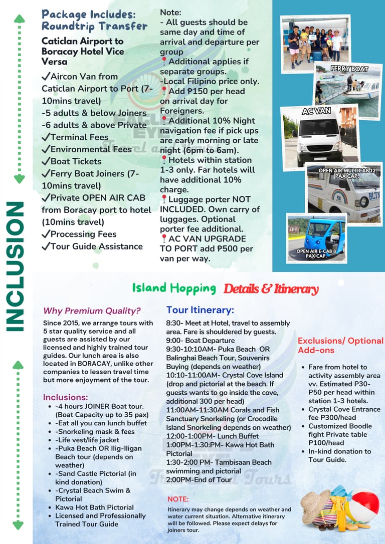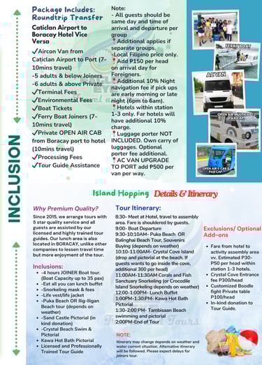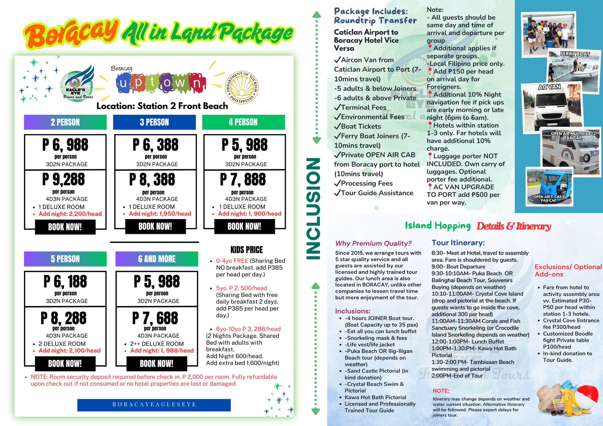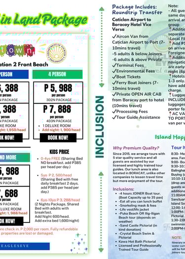 Package Inclusion and Pricelist